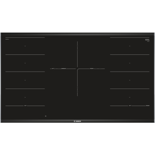 Bosch Serie 8 PXV975DC1E. Colore del prodotto: Nero, Posizionamento dell’apparecchio: Da incasso, Dimensione della larghezza del piano cottura: 90 cm. Tipo di controllo: Touch, Posizione di controllo: Frontale, Tipo di display: LED. Potenza aggregata (elettrica): 11100 W. Larghezza: 916 mm, Profondità: 527 mm, Altezza: 51 mm