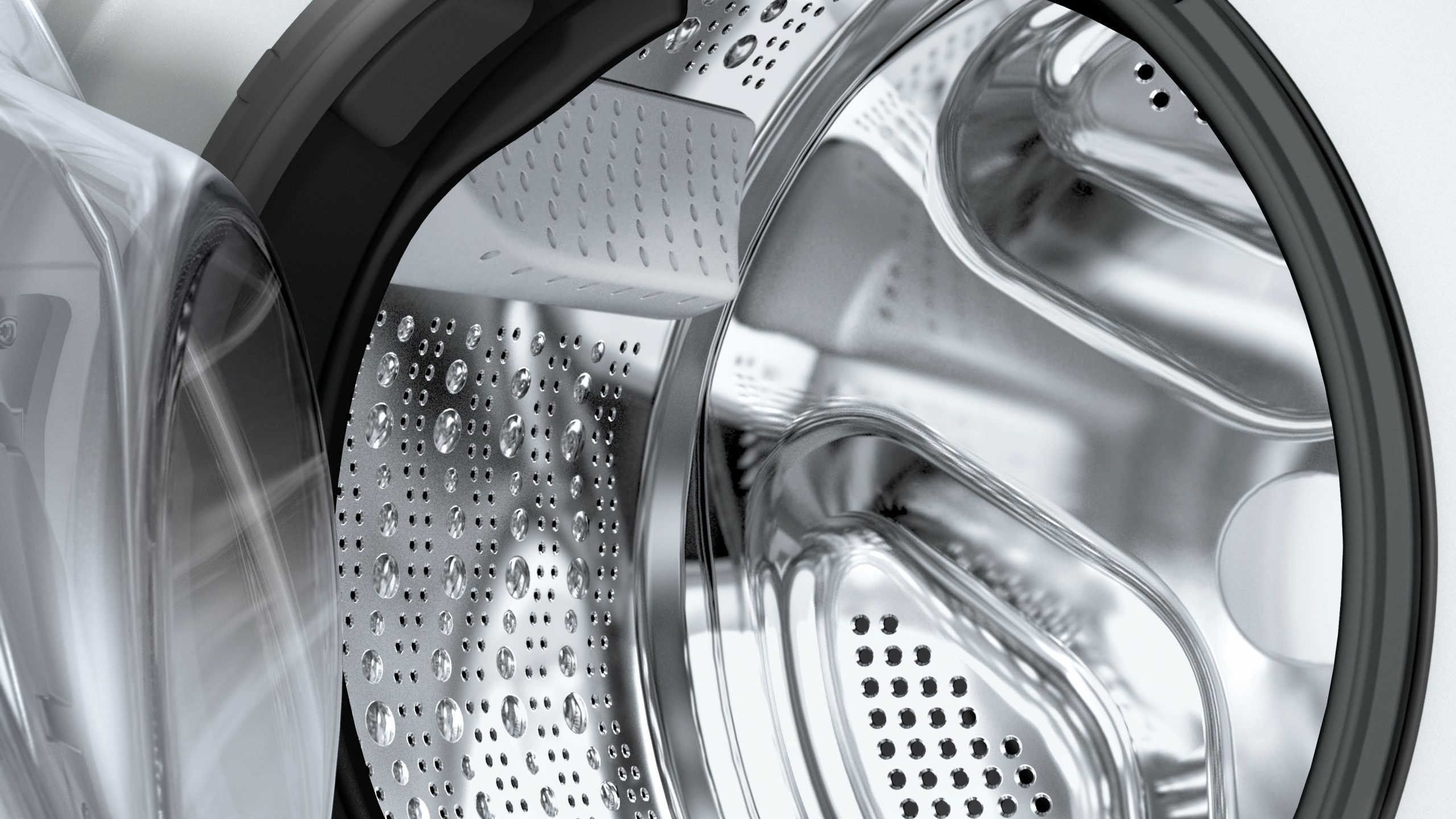 Non lasciare che la tua lavasciuga rovini l’atmosfera della serata. Il motore EcoSilence Drive™ è così silenzioso che puoi persino dimenticarti che è in funzione. Il motore senza spazzole ad alta efficienza energetica è silenzioso, particolarmente resistente e coperto da un’assistenza di 10 anni sui componenti.