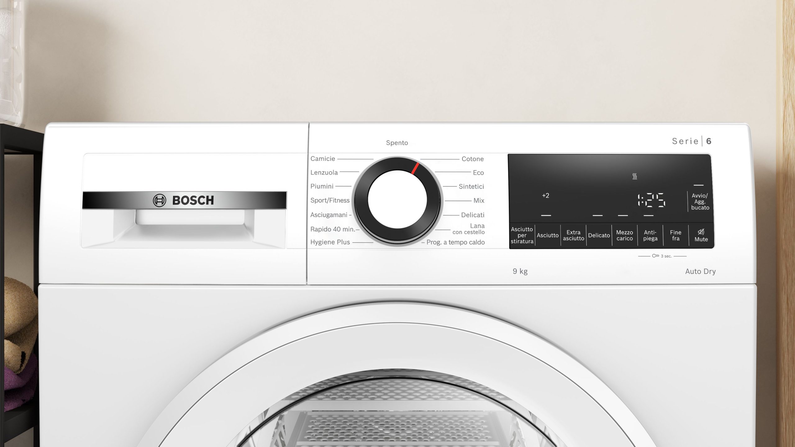 L’asciugatrice a pompa di calore con sensore Auto Dry sa quando il bucato è pronto, evita il surriscaldamento e protegge i capi.