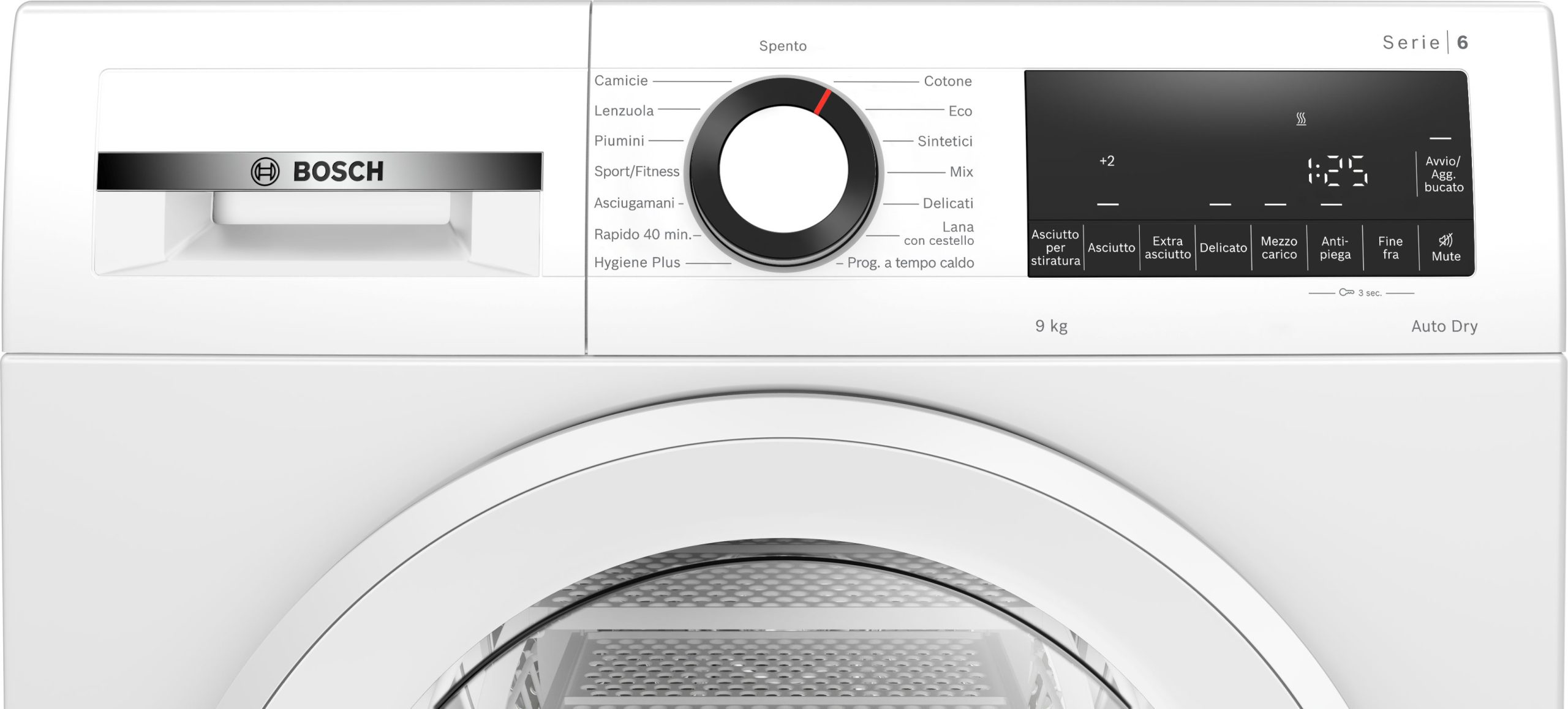 Programmi di asciugatura Camicia/maglietta, Cotone, Cotton eco, Delicati/Seta, Piumino/piumone, Igiene/Allergy Care, Mix, Rapido, Sport, Sintetico, Programmato, Asciugamano, Lana Sport, Cotone, Delicati/Seta, Eco, Biancheria da letto, Mix, Piumino/piumone, Refresh, Sintetico, Facile da stirare Auto, Cotone, Delicati/Seta, Jeans/denim, Mix, Refresh, Sport, Lana