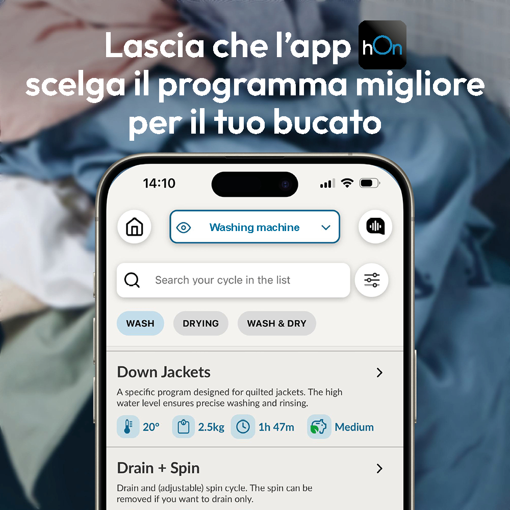 Programmi di lavaggio Cotone, Cura quotidiana, Delicati/Seta, Eco 40-60°C, A mano/Lana, Hygiene+, Jeans/denim, Rapido, Risciacquo, AI intelligente, Centrifuga/scarico, Stain care, Sintetico, Lana Cotone, Delicati/Seta, Eco 40-60°C, A mano/Lana, Rapido, Risciacquo, Centrifuga/scarico, Vapore, Sintetico Cotone, Delicati/Seta, Eco 40-60°C, Rapido, Vapore, Sintetico