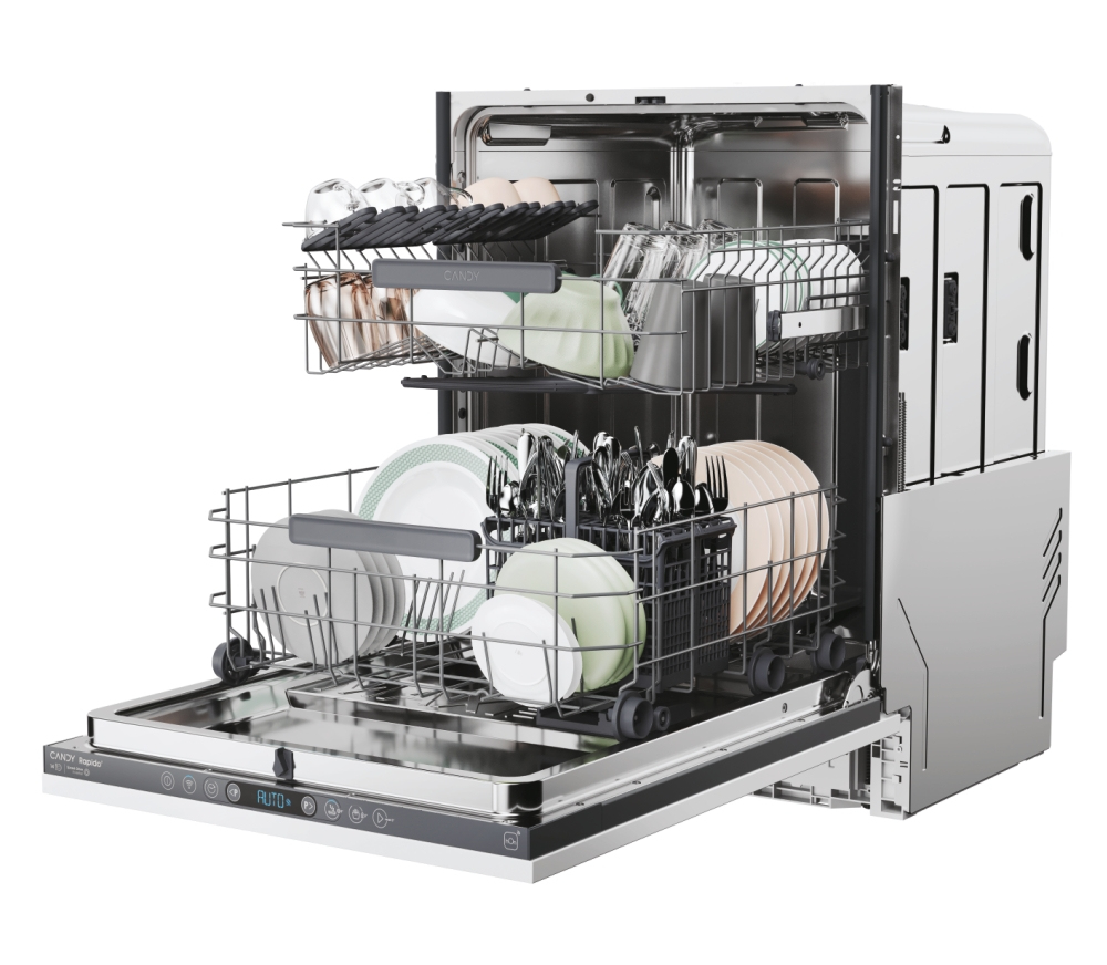 Candy Rapido’ è la lavastoviglie più veloce e spaziosa del mercato. È dotata di un’ampia gamma di cicli rapidi adatti a ogni esigenza, che semplificano l’utilizzo quotidiano anche grazie alla MAXI-TUB: la vasca più spaziosa in dimensioni standard per caricare le stoviglie più grandi.