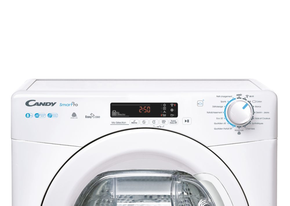 Candy CSOE H8A2DE-47. Posizionamento dell’apparecchio: Libera installazione, Tipo di carica: Caricamento frontale, Sistema di asciugatura: Pompa di calore. Capacità cestello: 8 kg, Condensation efficiency class (old): B, Programmi di asciugatura: Vestiti bianchi, Dark clothes, Lana, Sport, Risciacquo, Eco, Jeans/denim, Camicia/maglietta,…. Partenza ritardata: 24 h, Applicazioni per il controllo supportate: hOn. Consumo energetico: 1,93 kWh, Consumo energetico annuo: 236 kWh, Scala di efficienza energetica: Da A+++ a D. Profondità: 607 mm, Larghezza: 596 mm, Altezza: 850 mm