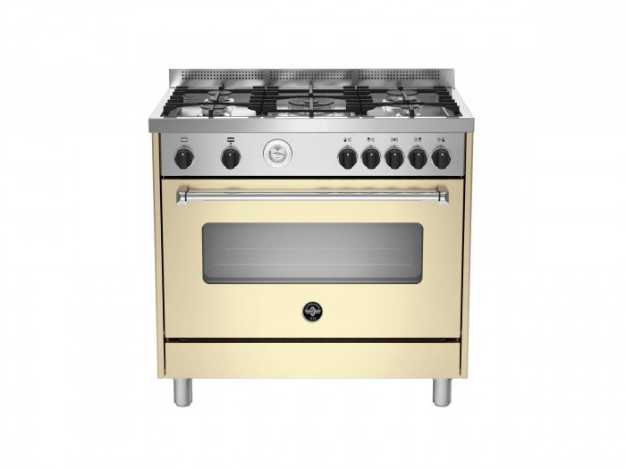 Il generoso stile d’oltreoceano della Serie Americana offre, ad una casa elegante, il design robusto e la sicurezza di una cucina solida e d’alta ingegneria. Il forno a gas è ventilato e possiede 5 funzioni. La cucina è dotata di termometro. Il piano cottura è dotato di 5 fuochi a gas, incluso un bruciatore ad alto rendimento con doppia corona con potenza fino a 5kw. I nostri prodotti e gli imballaggi sono riciclabili al 99% I colori visualizzati possono variare a seconda delle impostazioni e della risoluzione dello schermo del computer. Per maggiori informazioni contatta il tuo rivenditore