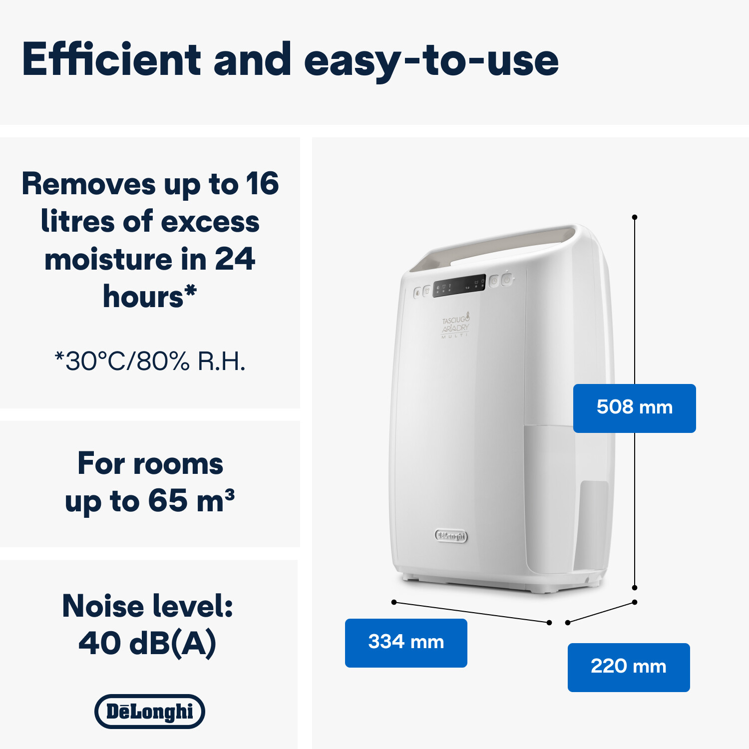 Tasciugo Ariadry Multi è certificato dalla Allergy Standards Foundation come adatto alle persone soggette ad asma e allergie. I deumidificatori rendono la tua casa meno ospitale alla proliferazione di acari e batteri, riducendo l’irritazione della pelle o del sistema respiratorio e consentendo a te e alla tua famiglia di respirare più facilmente.