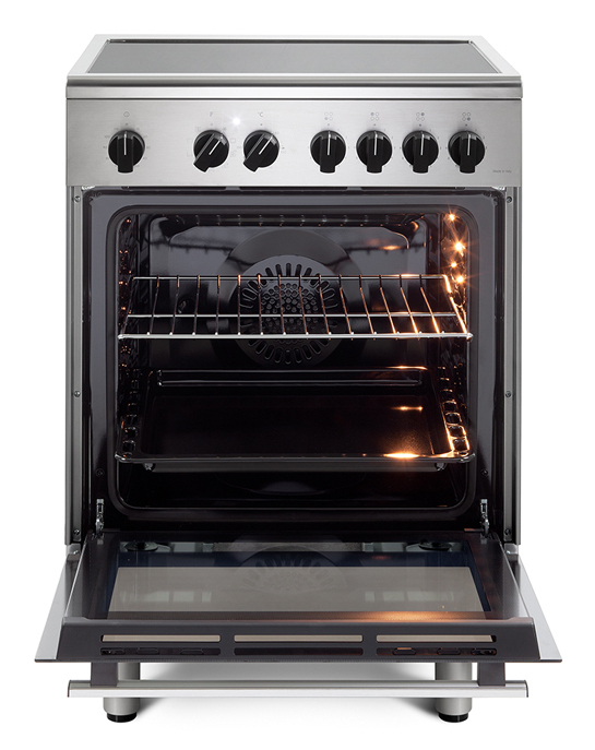 Cucina a libera installazione 60×60 dal design moderno, 4 zone induzione, forno elettrico con 9 funzioni.