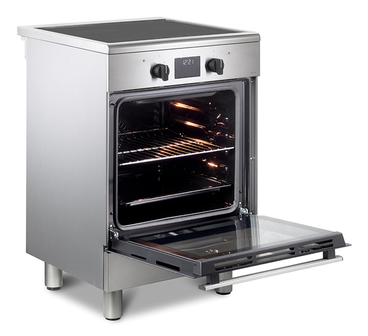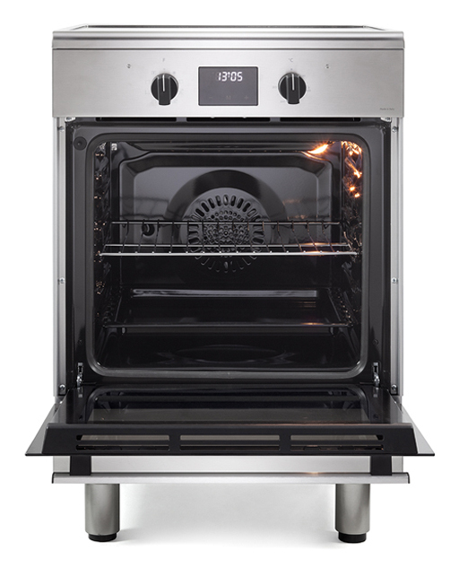 Cucina a libera installazione 60×60 cm; piano cottura con 4 zone induzione; forno elettrico multifunzione con funzioni a vapore Easy Steam e Idroclean.
