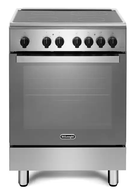 Cucina a libera installazione 60 cm x 60 cm ; piano cottura in vetroceramica con 4 piastre radianti (1 doppia zona); forno elettrico multifunzione con cavità da 69 litri netti; speciali funzioni a vapore Easy Steam e Idroclean.