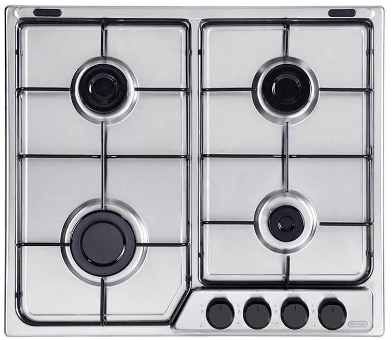 Piano ad incasso a gas da 60 cm con griglie in piattina smaltata e comandi frontali. Dal punto di vista delle misure, è il modello più utilizzato in cucina. Grazie a misure sobrie ed equilibrate, questo piano risulta essere la scelta ideale in tutti quei contesti in cui gli spazi ristretti obbligano a misure più contenute.