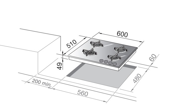 | Dimensione della larghezza del piano cottura (cm) | 60 | 60 | 60 |