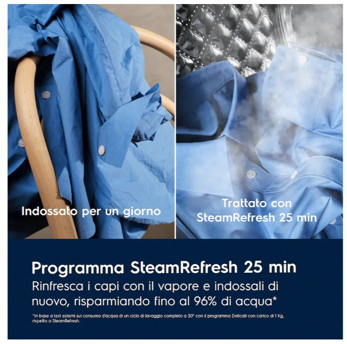 La lavatrice SteamCare rinfresca rapidamente anche i capi delicati che non necessitano di un lavaggio completo. Il vapore aiuta a ridurre le pieghe[2] e gli odori.[1]