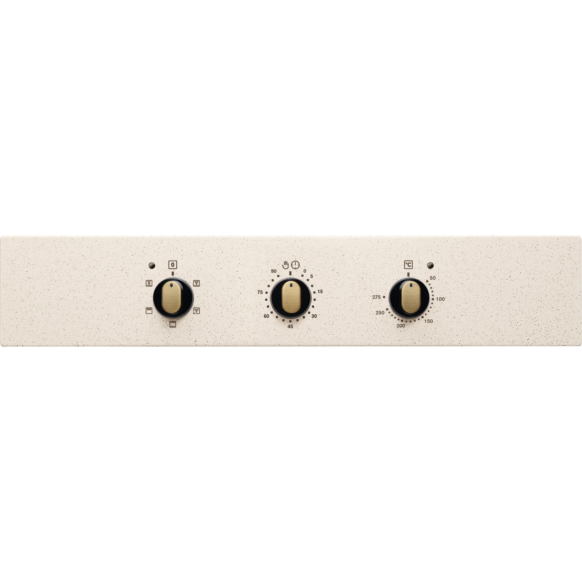 Electrolux FR53S Forno Multifunzione Multicinque (pizza) – Rustico – InfiSpace + 25% – Classe energetica A – Contaminuti – Ventilazione radiale di raffreddamento – Doppio vetro ipotermico con cristallo interno termoriflettente – Isolamento “lana bianca” – Muffola con smalto “Clear’n Clean” – Controporta liscia con vetri estraibili – Acqua Cleaning – Luce alogena – 1 leccarda – 1 griglia – Porta estraibile – Estetica sabbia/maniglia e manopole finitura bronzo