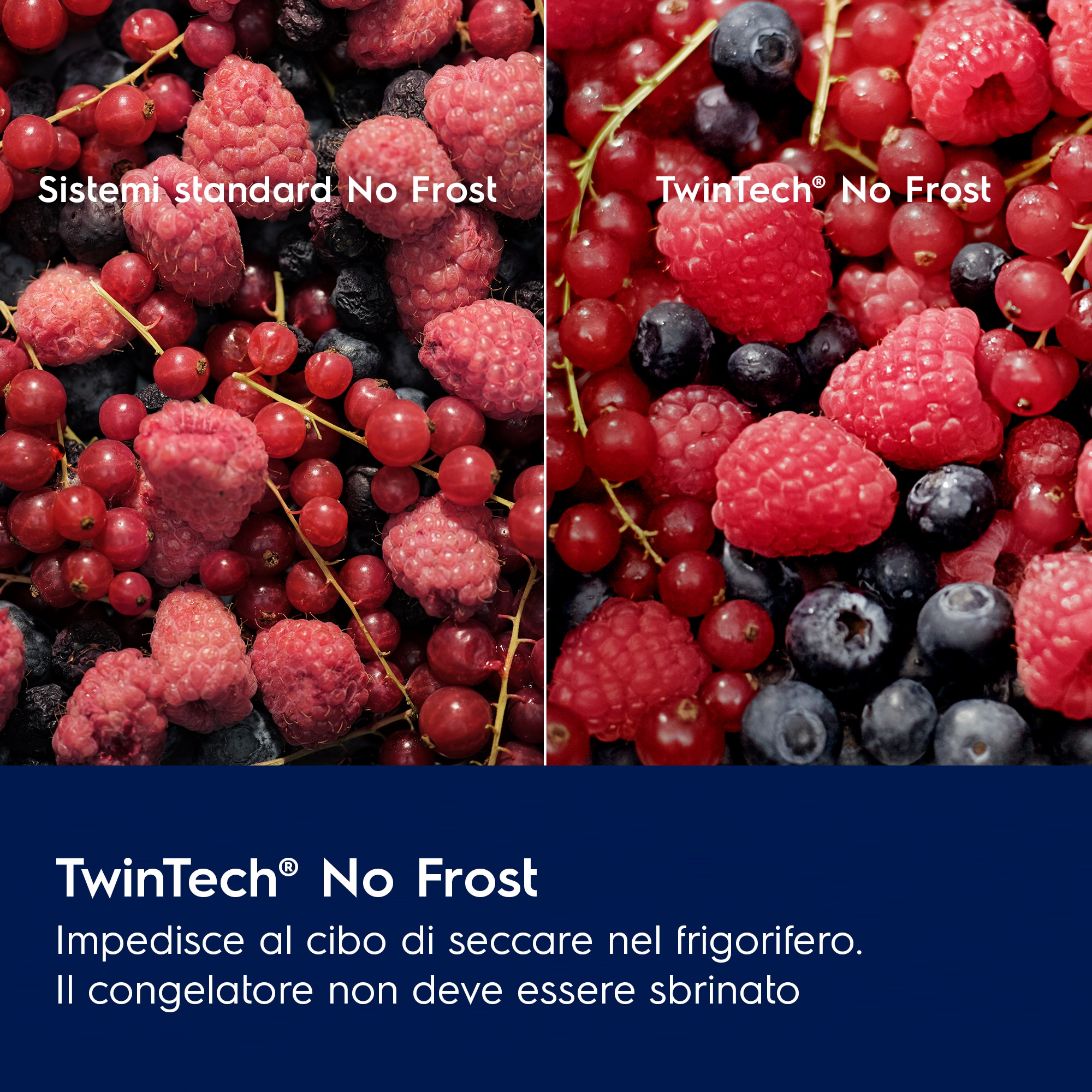 Il frigocongelatore Serie 600 TwinTech® Total No Frost protegge i sapori di tutti gli ingredienti. Con TwinTech® Total No Frost non dovrai più sbrinare il frigorifero. ll doppio sistema di raffreddamento fa si che l’umidità ideale venga preservata e si prevenga la disidratazione degli alimenti.