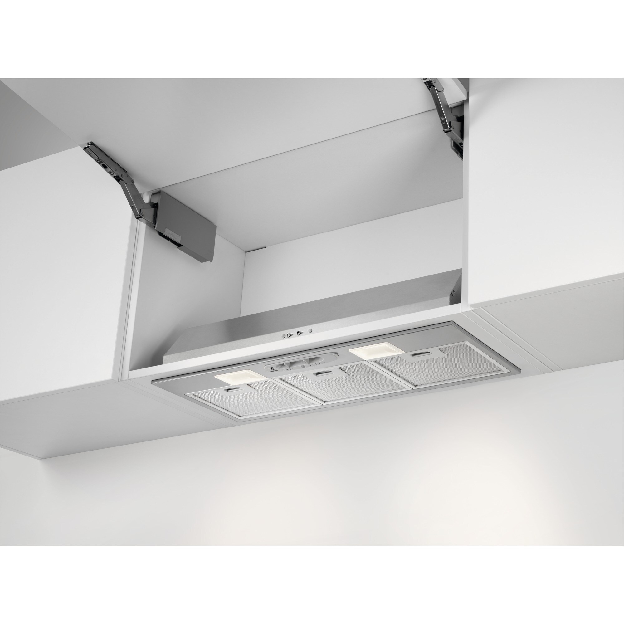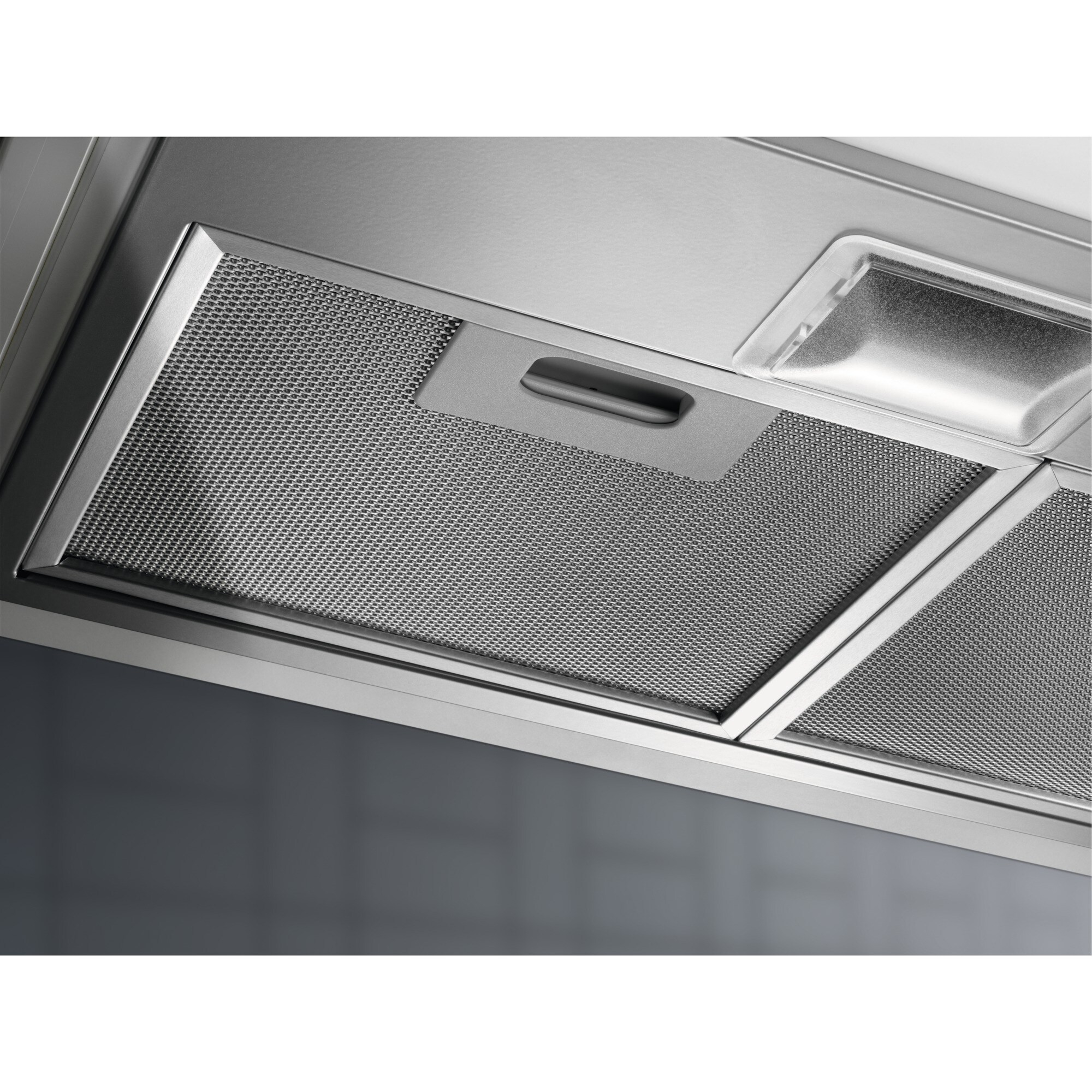 • Electrolux LFG337S Cappa Gruppo incasso Cappa gruppo incasso – 70 cm; Portata massima aspirante 400 m³/h; 1 motore da 100 W; Comandi: slider; Regolazione motore a 3 velocità; 3 filtri in metallo lavabile; Luci LED; Installabile in modalità filtrante/aspirante; Classe energetica C; Estetica grigia – 68 dB(A)