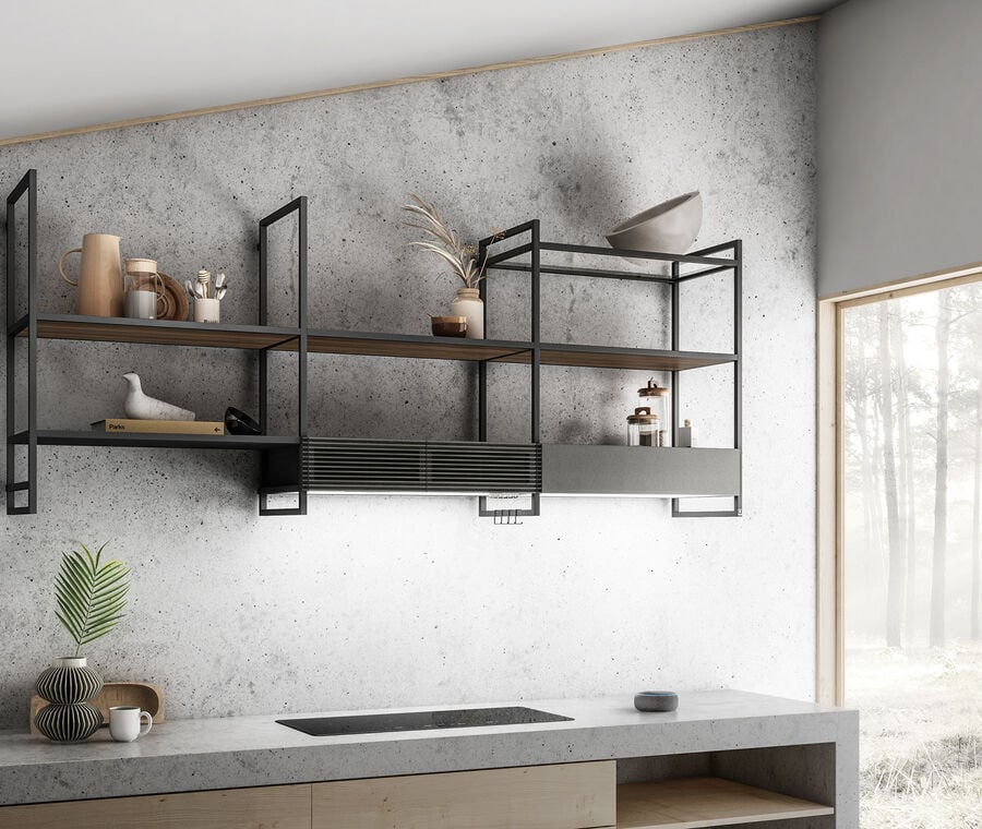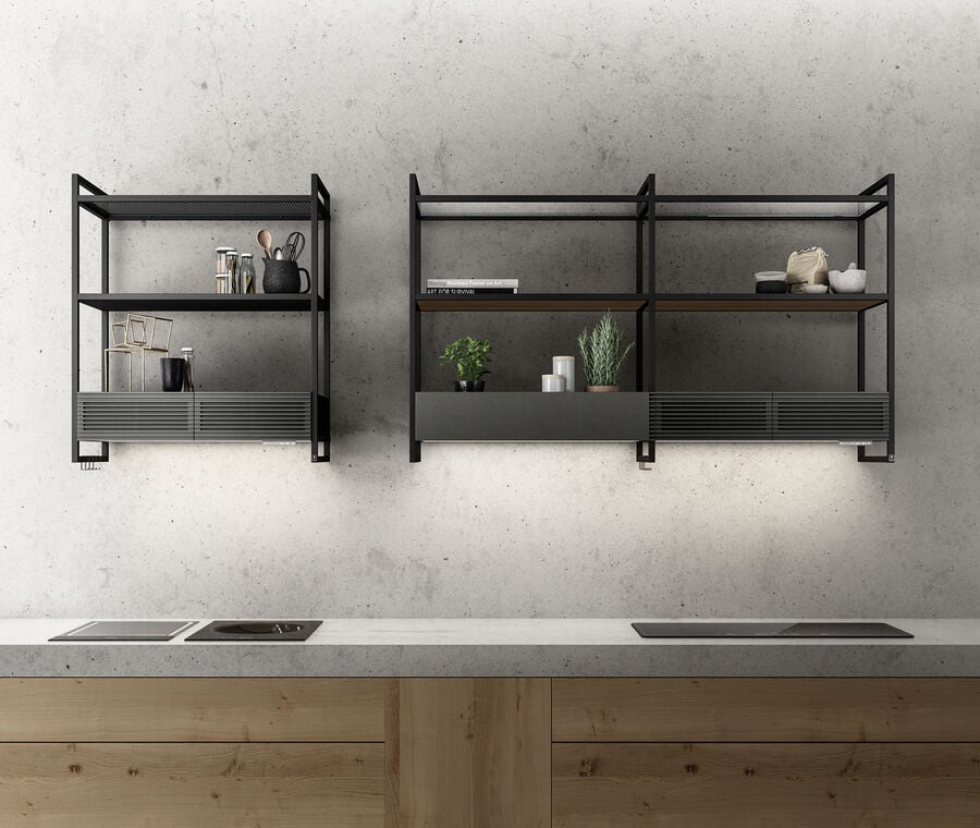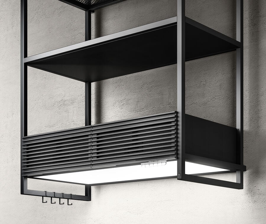 Modulo aggiuntivo con luce full LED. La parte superiore del modulo è pensata per contenere e tenere a portata di mano gli utensili da cucina di uso quotidiano. Necessario l’acquisto di un traliccio aggiuntivo (KIT0166963).