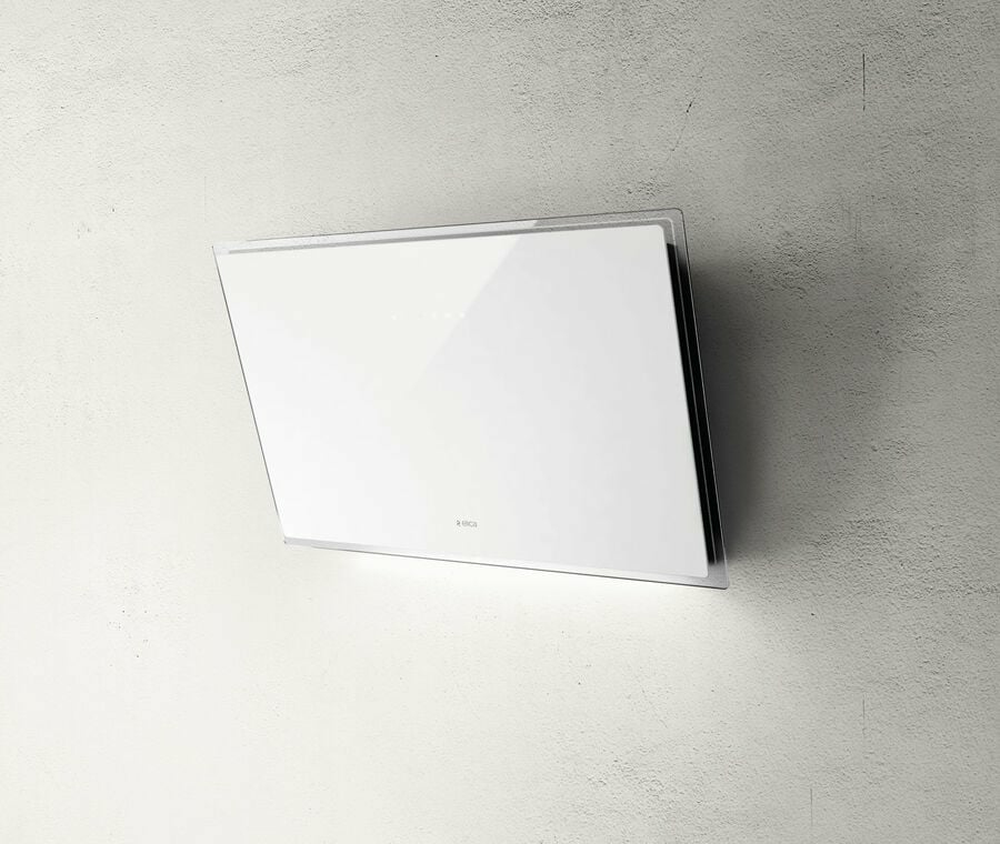 Elle è un prezioso elemento di design funzionale al suo scopo, con zona comandi a infrarossi e illuminazione diffusa a LED. Il pannello di vetro trasparente fa da cornice della cappa, che è disponibile nei colori nero o bianco.