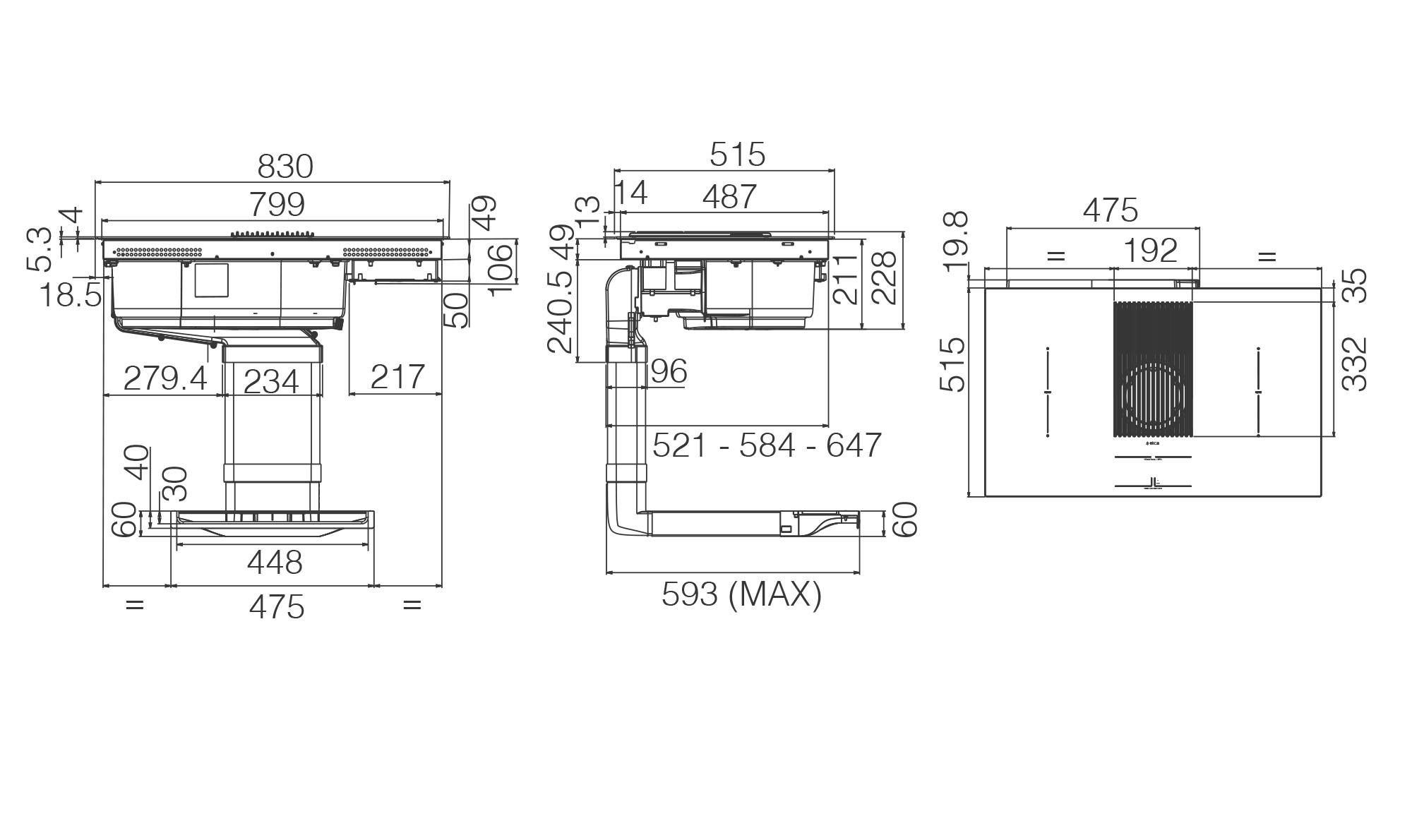 | Dimensione della larghezza del piano cottura (cm) | 83 | 83 | 83 |