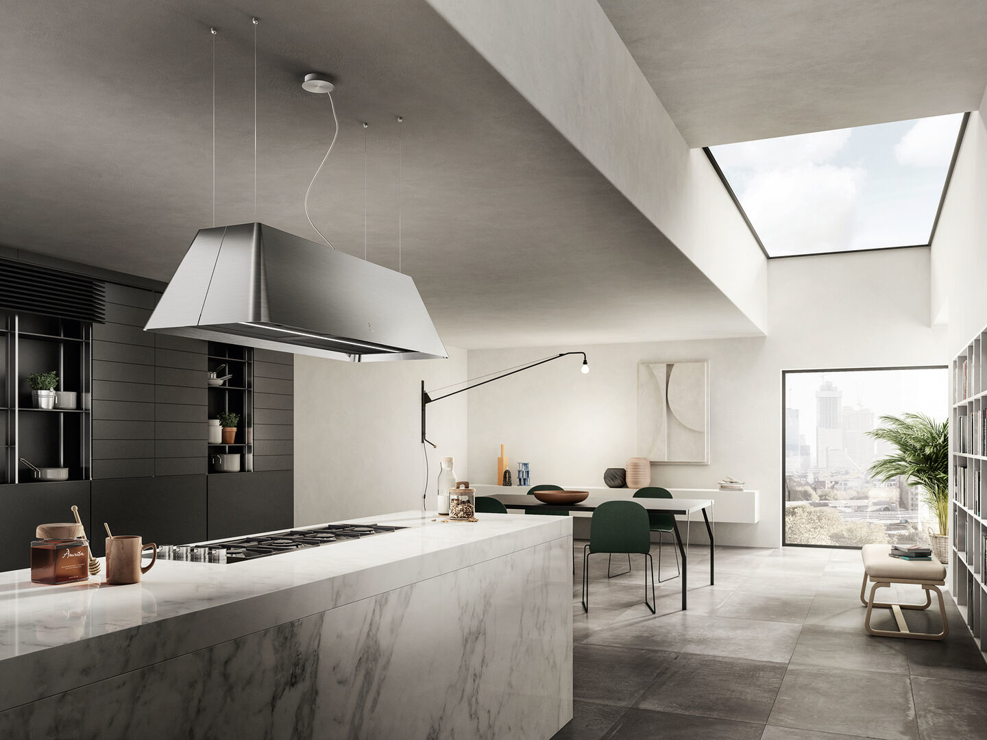 Ikona Maxxi Pure integra una cappa e un purificatore d’aria: la cappa rimuove odori e vapori durante le fasi di cottura, mentre il purificatore d’aria libera l’ambiente da allergeni come polvere, peli di animali, pollini, oltre a inquinanti rilasciati da muffe, prodotti per la pulizia e rivestimenti d’interni regalando una sensazione di benessere.