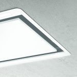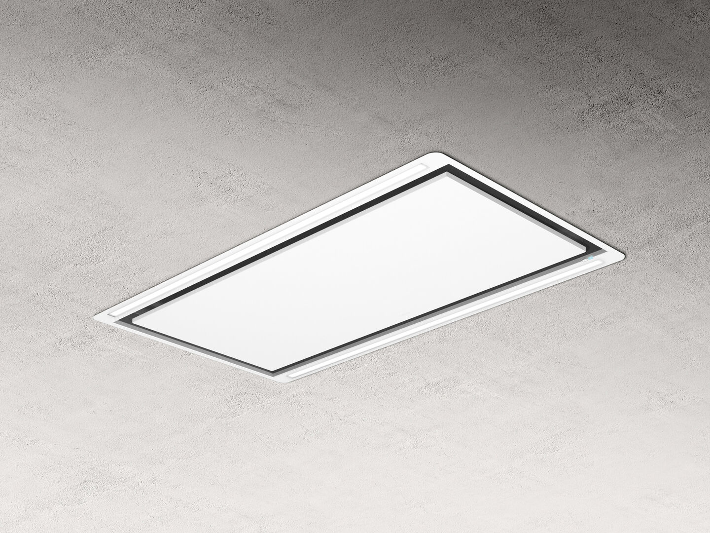 A filo con il soffitto, l’elegante pannello in acciaio inossidabile, con due raffinate strisce LED, nasconde con intelligenza il sistema estrattivo potente e silenzioso, progettato per garantire le massime prestazioni, anche a una distanza significativa dal piano cottura.