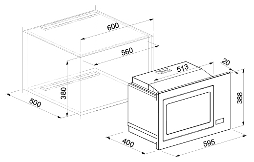 | Larghezza del compartimento (cm) | 56 | 56 | 60 |