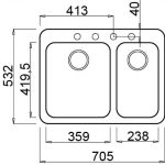 | Dimensioni prima vasca (LxL) (mm) | 359 x 420 | 460 x 420 | 720 x 400 |