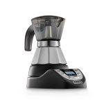Moka elettrica con capacità di 2 o 1 tazza e controllo digitale, timer programmabile 24 ore, spegnimento automatico, funzione “Aroma”, funzione “Orzo” e funzione mantenimento in caldo.