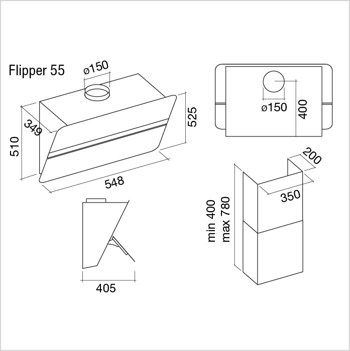 Falmec Flipper Cappa Parete 55 cm, satinato bianco, 800 m3/h