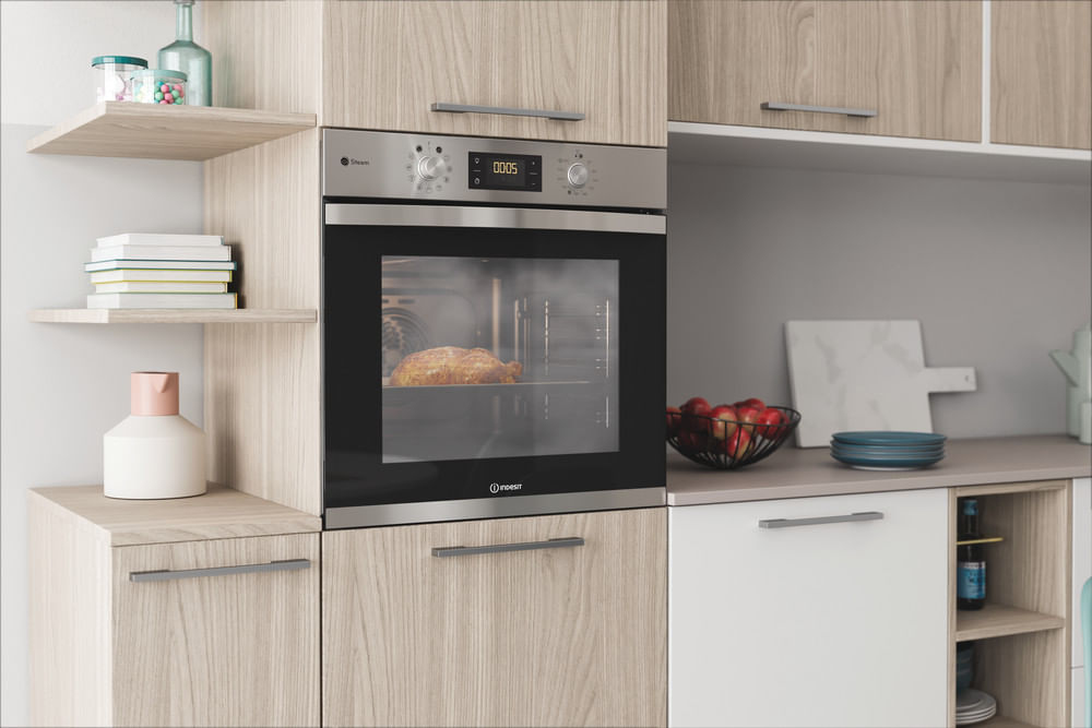 Caratteristiche di questo forno da incasso Indesit: tecnologia elettrica avanzata per cucinare risparmiando energia.