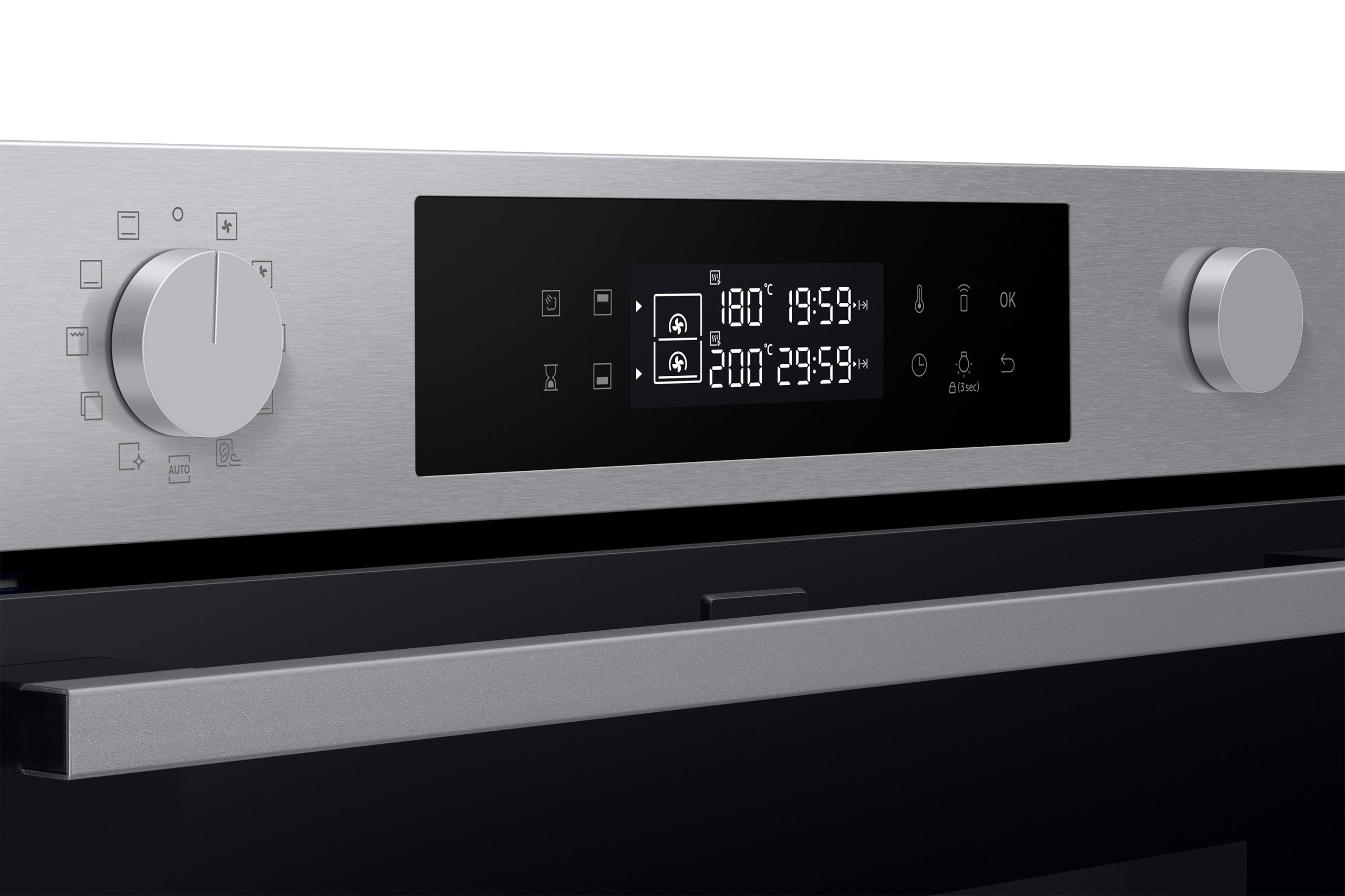 La doppia porta ti offre la massima versatilità per cuocere vari piatti. Apri la metà superiore del forno e cuoci le pietanze più piccole nella parte in alto. Controlla la cottura e condisci gli alimenti più facilmente, con meno dispersione di calore. Oppure puoi aprire la porta per intero e usare tutta la cavità del forno quando cucini più cibi.