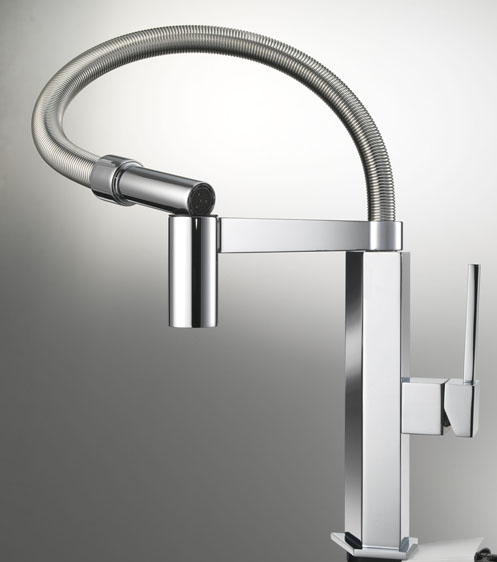 Il miscelatore GK è dotato di una pratica diccetta flessibile per orientare il getto dell’acqua nei punti desiderati.