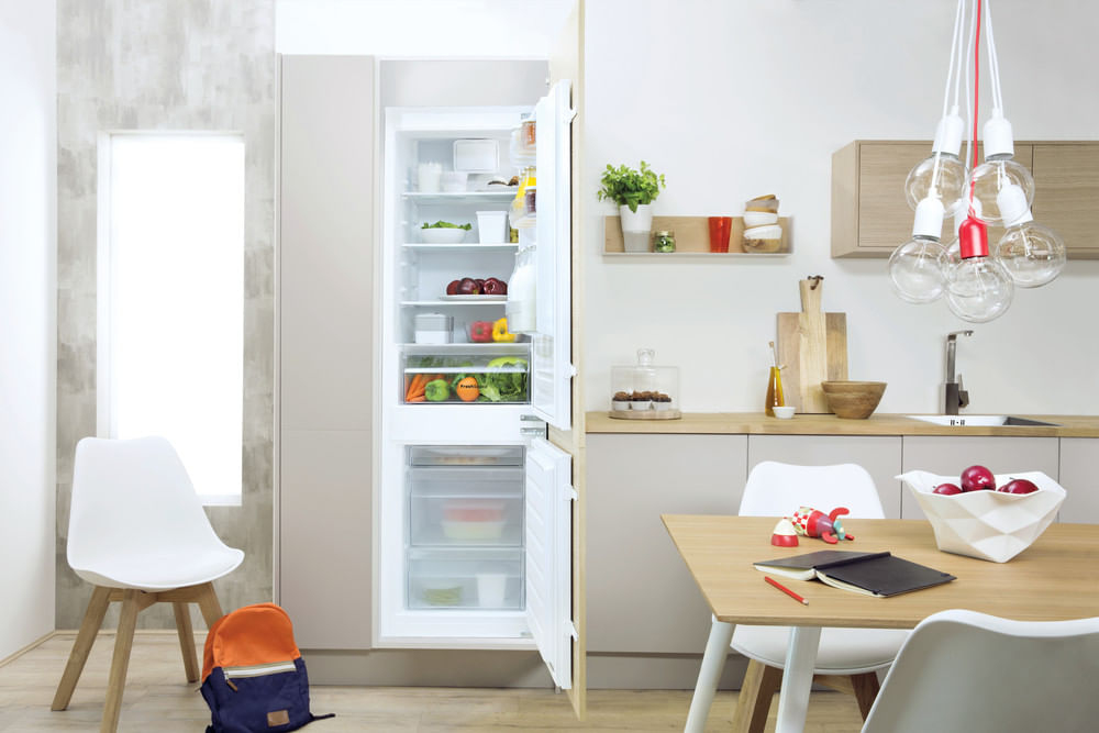 Caratteristiche di questo frigorifero combinato da incasso Indesit: colore bianco. Ripiani in vetro, robusti ed eleganti al tempo stesso. Flusso d’aria regolare e uniforme all’interno dell’elettrodomestico, per una ventilazione potenziata. Comodo porta-bottiglie per conservare le bottiglie con sicurezza.