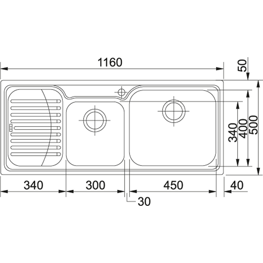 | Dimensioni seconda vasca (LxL) (mm) | 170 x 300 | 340 x 400 | 340 x 400 |