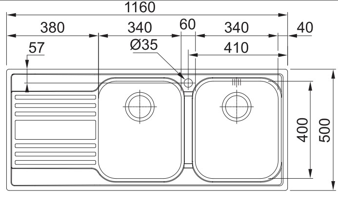 | Dimensioni seconda vasca (LxL) (mm) | 340 x 400 | 340 x 400 | 160 x 300 |