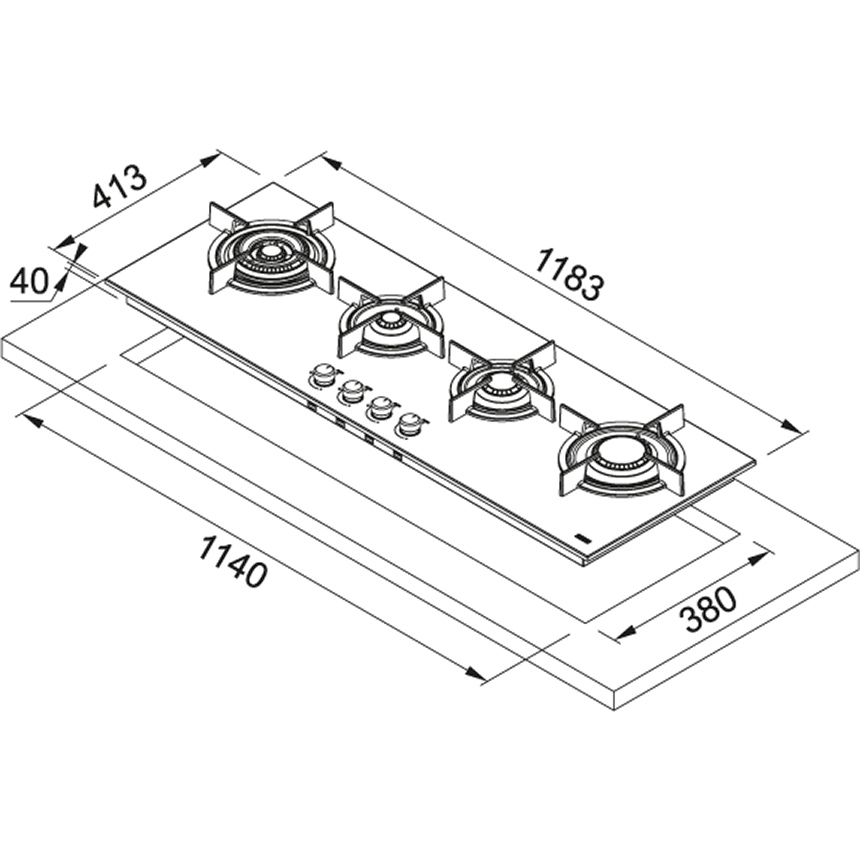 Franke Crystal Steel Pro FHCR 1204 3G TC HE XA C. Colore del prodotto: Acciaio inox, Posizionamento dell’apparecchio: Da incasso, Dimensione della larghezza del piano cottura: 120 cm. Bruciatore piccolo: 1000 W, Bruciatore medio: 1750 W, Bruciatore grande: 3000 W. Tipo di controllo: Manopola, Posizione di controllo: Frontale superiore. Potenza aggregata (gas): 9750 W. Larghezza: 1183 mm, Profondità: 413 mm, Altezza: 40 mm
