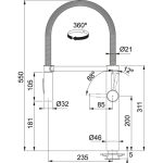 Franke 115.0393.974. Tipo di beccuccio: Standard, Colore del prodotto: Cromo, Materiale del rubinetto: Metallo. Altezza (max): 55 cm, Distanza parte più alta della canna e piano di fissaggio: 18,1 cm