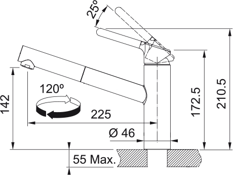 | Distanza tra foro di fissaggio e diffusore acqua (cm) | |