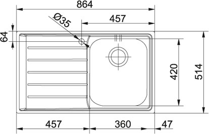 Franke NEX 211. Colore del prodotto: Acciaio inox, Numero di vasche per lavello: 1 ciotole, Dimensioni prima vasca (LxL): 360 x 420 mm. Larghezza: 864 mm, Profondità: 514 mm, Larghezza del compartimento: 85,5 cm