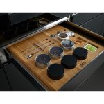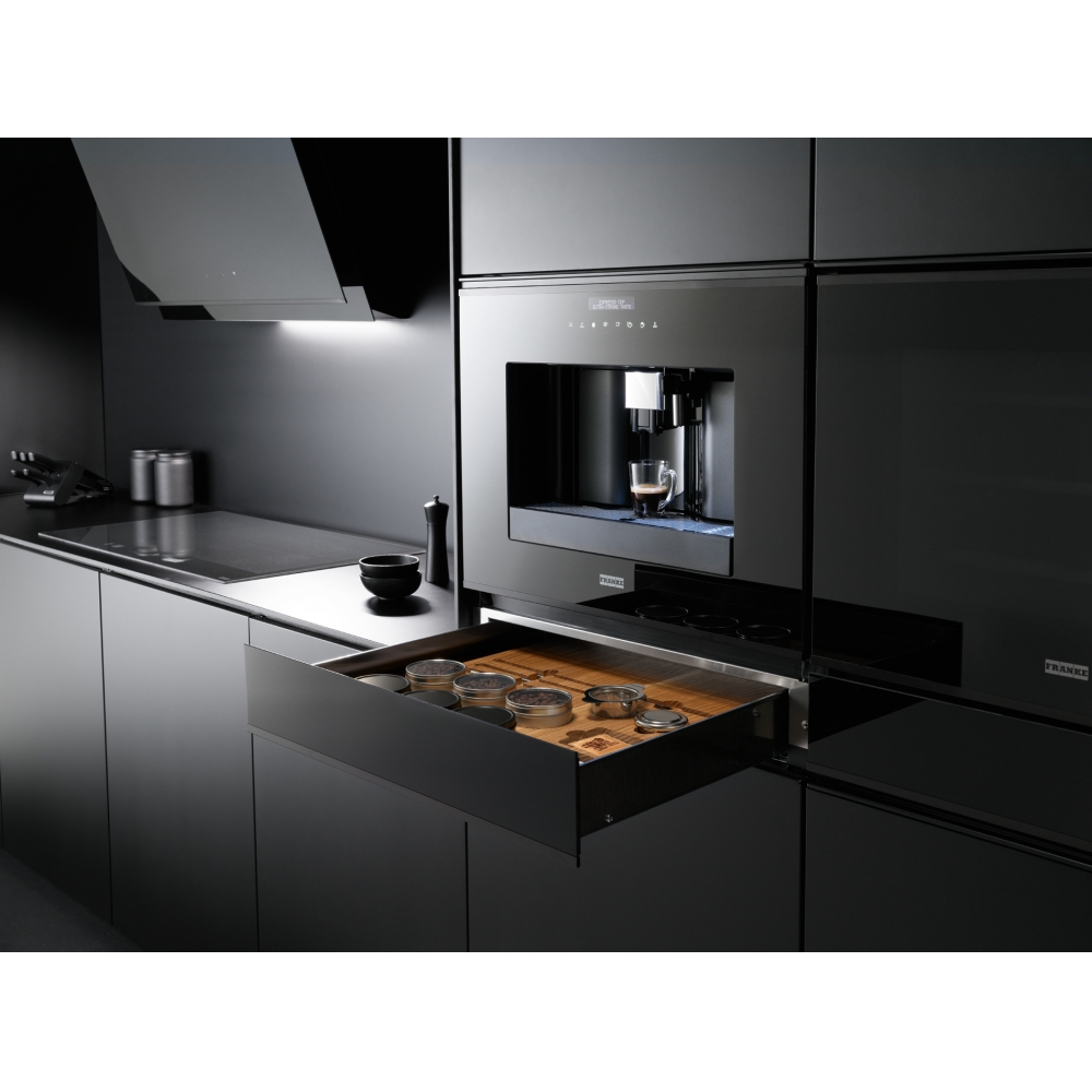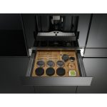 Il cassetto accessori per macchina da caffè FMY 14 CMD BK è completo di un set per latte art, un infusore per foglie di the, 3 contenitori per chicchi di caffè, 3 contenitori per foglie di the, cucchiaio dosatore e 2 comparti dedicati alle bustine monodose