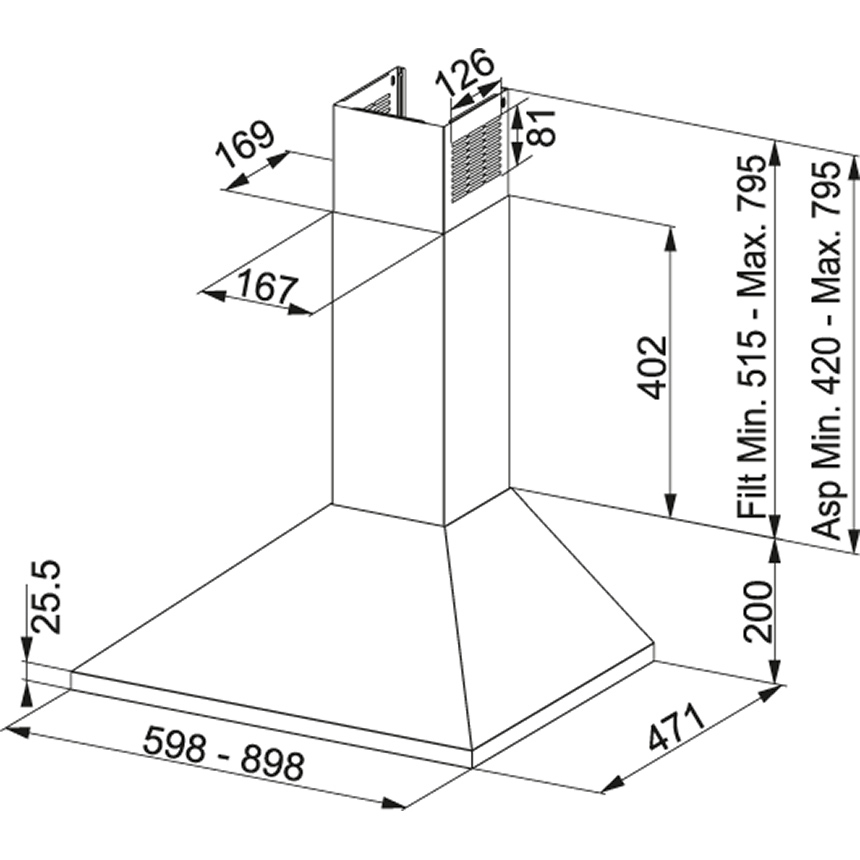 | Tipo | Cappa aspirante a parete | Cappa aspirante a parete | Cappa aspirante a parete |