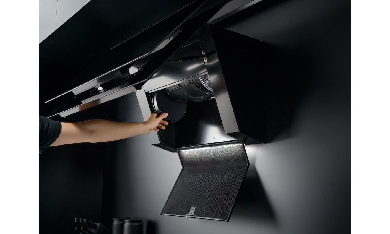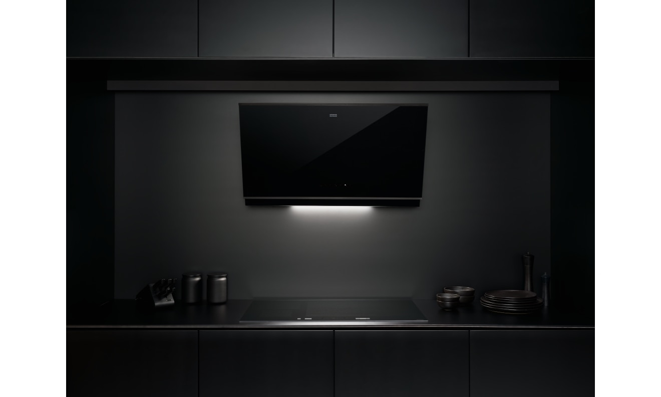 Franke FMYPRO907FMBK/BKM. Potenza massima di estrazione: 450 m³/h, Tipo di estrazione: Aspirante/Filtrante, Classe di efficienza dinamica del fluido: A. Tipo: Cappa aspirante a parete, Colore del prodotto: Nero, Materiale della scocca: Vetro. Tipo di filtro antigrasso: Acciaio inossidabile/Carbone. Numero di lampadine: 1 lampadina(e), Tipo di Lampadina: LED, Efficienza luminosa (LE): 40 lux/W. Classe efficienza energetica: A++, Consumo energetico annuo: 28 kWh, Scala di efficienza energetica: Da A+++ a D