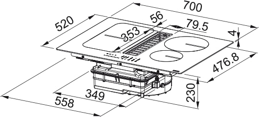 | Dimensione della larghezza del piano cottura (cm) | 70 |