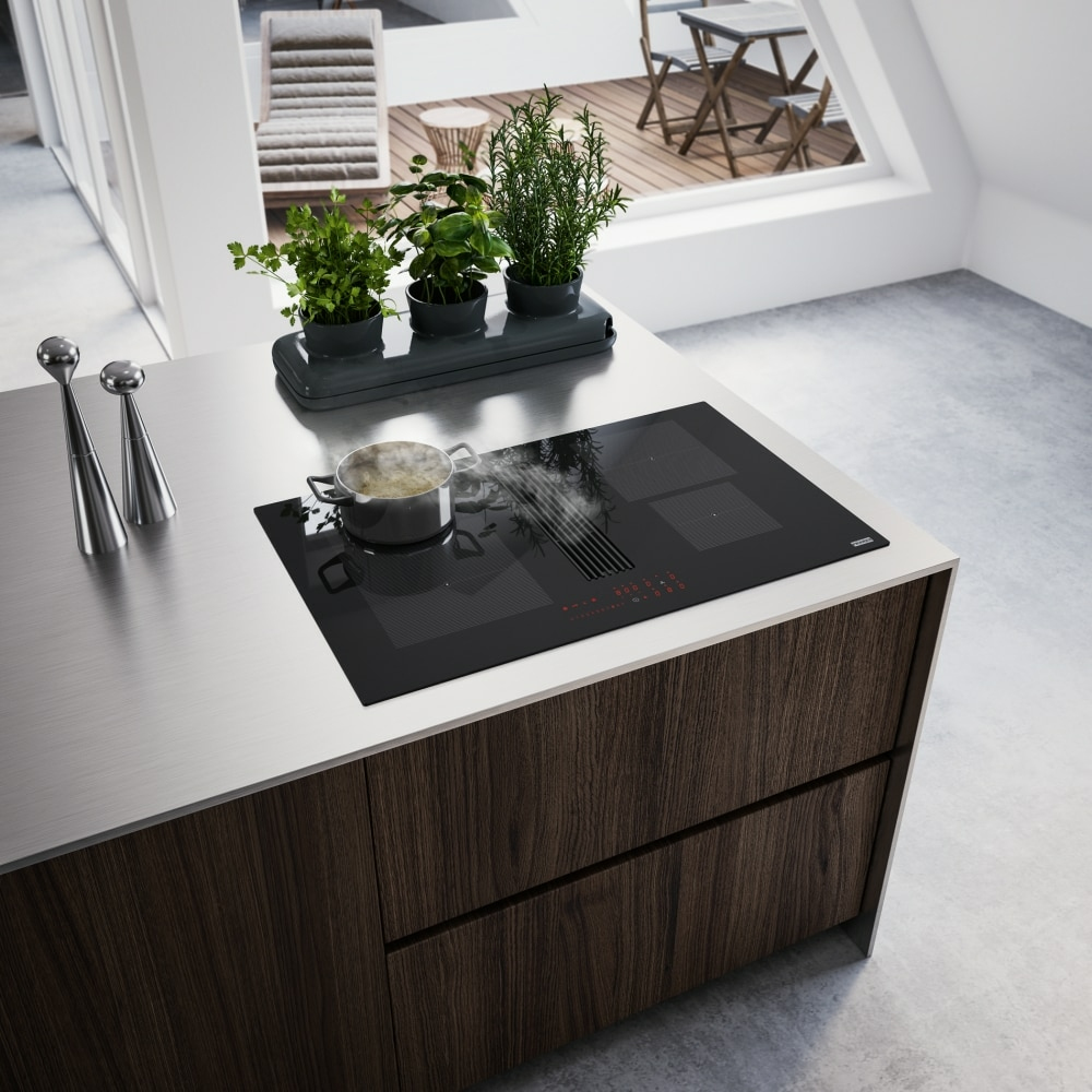 Franke Maris FMA 8381R HI. Colore del prodotto: Nero, Posizionamento dell’apparecchio: Da incasso, Dimensione della larghezza del piano cottura: 83 cm. Tipo di controllo: Touch, Posizione di controllo: Frontale, Tipo di timer: Digitale. Tipo di estrazione: Aspirante, Potenza massima di estrazione: 600 m³/h, Livello di rumore della ventola (min): 49 dB. Potenza aggregata (elettrica): 7400 W, Tensione di ingresso AC: 220 – 240 V, Frequenza di ingresso AC: 50 – 60 Hz. Larghezza: 830 mm, Profondità: 520 mm, Larghezza del compartimento: 75 cm
