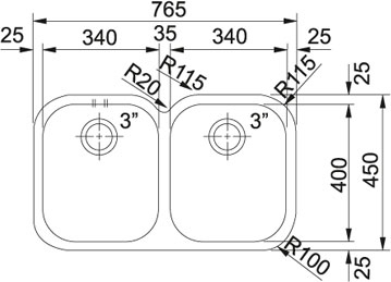 Franke Block Bmg AMX 120. Materiale del lavandino: Acciaio inox, Colore del prodotto: Acciaio inox, Numero di vasche per lavello: 2 ciotole. Larghezza: 765 mm, Profondità: 450 mm, Altezza: 190 mm