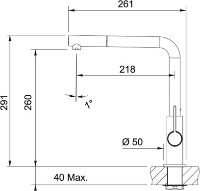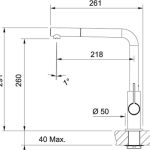 Franke Neptune Evo Pull-out. Tipo di beccuccio: Standard, Colore del prodotto: Cromo, Controllo del flusso d’acqua: Leva sanitaria. Altezza (max): 29,1 cm, Distanza tra foro di fissaggio e diffusore acqua: 21,8 cm, Distanza diffusore dell’acqua e superficie di fissaggio: 26 cm