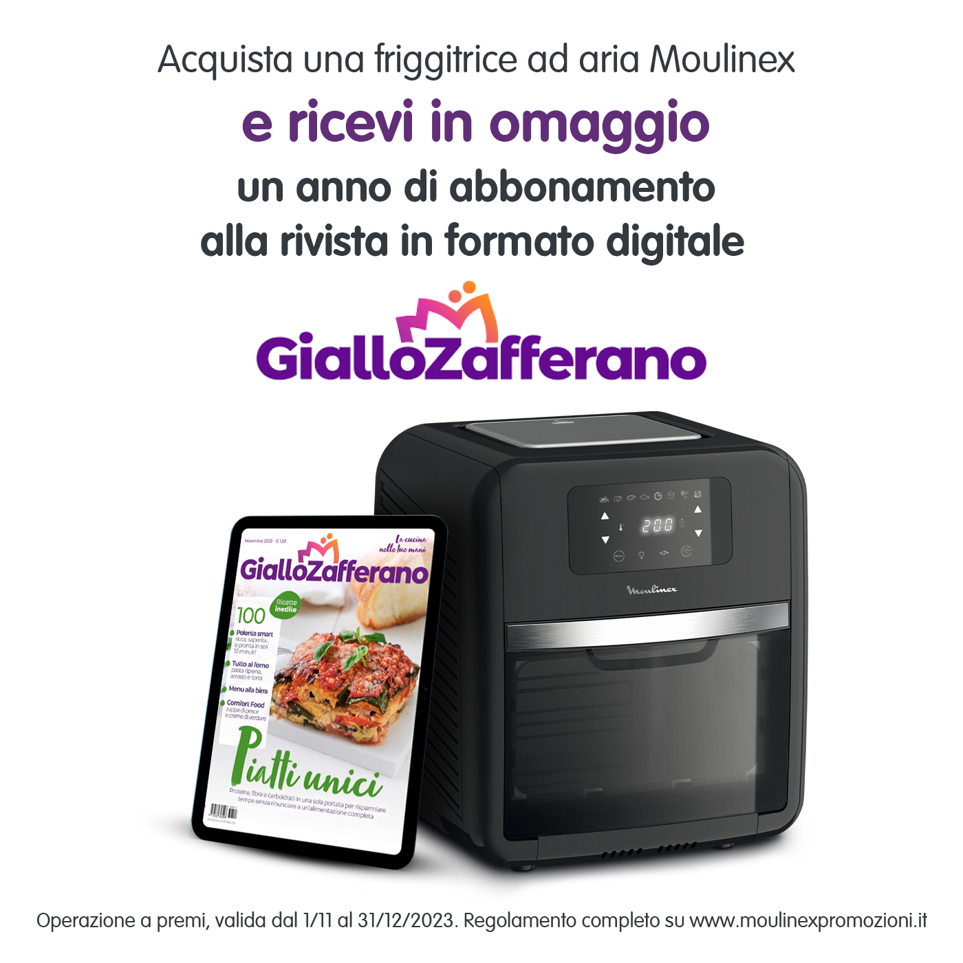 Piatti super croccanti e grigliate perfette: Moulinex Easy Fry Oven&Grill è in grado di fare tutto, e senza l’aggiunta di olio! Questo pratico apparecchio tutto in uno riunisce 9 funzioni: frittura ad aria, rosolatura, grill, cottura al forno e allo spiedo, disidratazione, tostatura e semplice riscaldamento. Grazie agli 8 programmi preimpostati (patatine fritte, pollo, carne, pesce, pizza, torte, essiccatura e grill), cucinare è facilissimo; mentre le diverse griglie pressofuse permettono di preparare fino a tre pasti alla volta, per risultati sani e deliziosi che tutta la famiglia apprezzerà. I versatili accessori e l’ampia capacità sono perfetti per preparare una varietà di golose ricette, mentre il controllo della temperatura di precisione garantisce risultati straordinari. Completano il tutto un pratico timer e componenti lavabili in lavastoviglie, per una pulizia ancora più facile, per perdere ancora meno tempo in cucina e passarlo invece con chi ami!