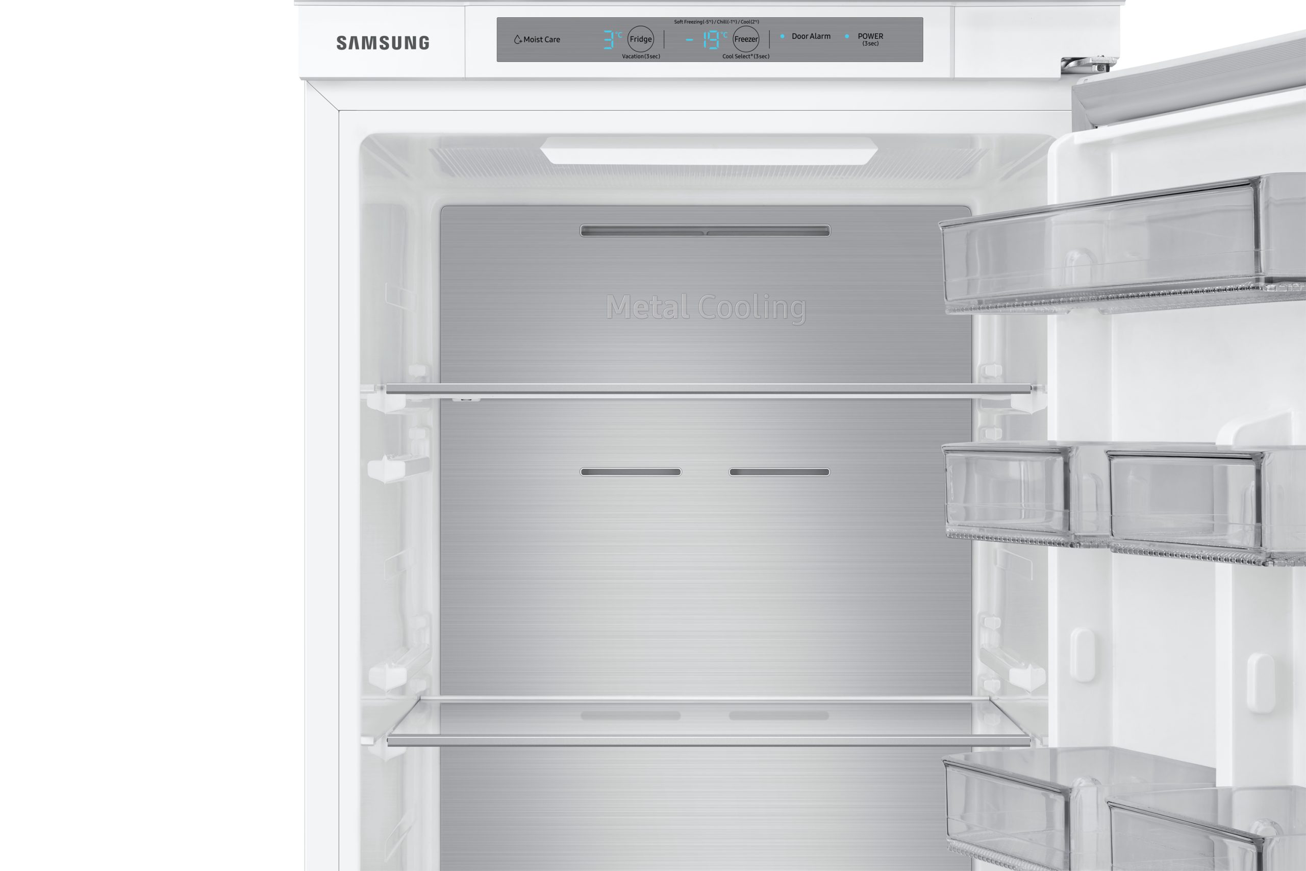 La zona Cool Select Plus offre il massimo della flessibilità in fatto di conservazione. Basta un tocco per offrire a ciascun cibo la propria temperatura di conservazione ottimale e far sì che rimanga fresco più a lungo. Devi solo scegliere l’impostazione che meglio risponde alle tue esigenze tra Frutta e verdura (2°C), Carne e pesce (-1°C), Soft Freezer (-5°C) e Freezer (-15~-23°C).