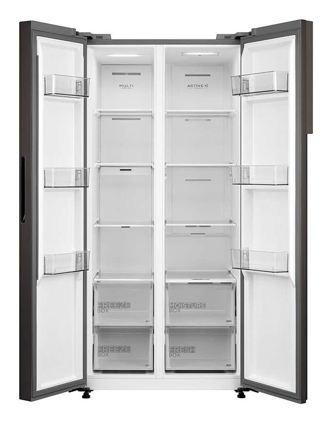 Questo frigorifero a doppia porta, compatto ma potente, offre una capacità di 460 litri, ideale per soddisfare qualsiasi esigenza, anche di famiglie numerose. Grazie al suo design elegante, si integra perfettamente in tutte le cucine senza compromettere la sua capacità di conservazione degli alimenti. La configurazione interna è stata studiata per offrire la massima flessibilità e praticità d’uso, semplificando il processo di conservazione degli alimenti.