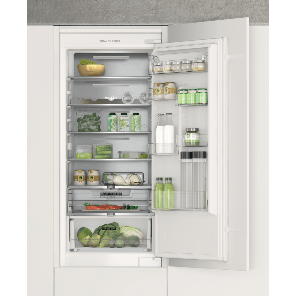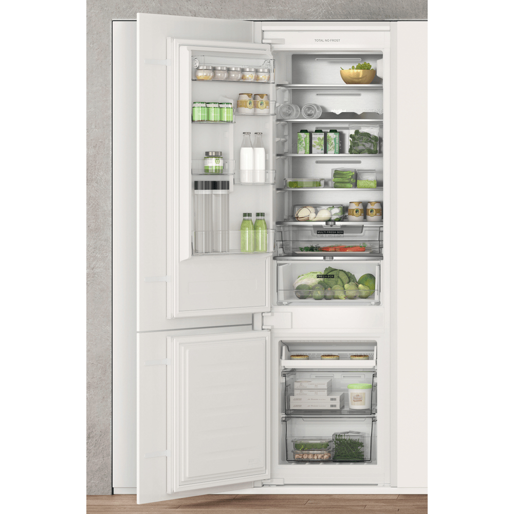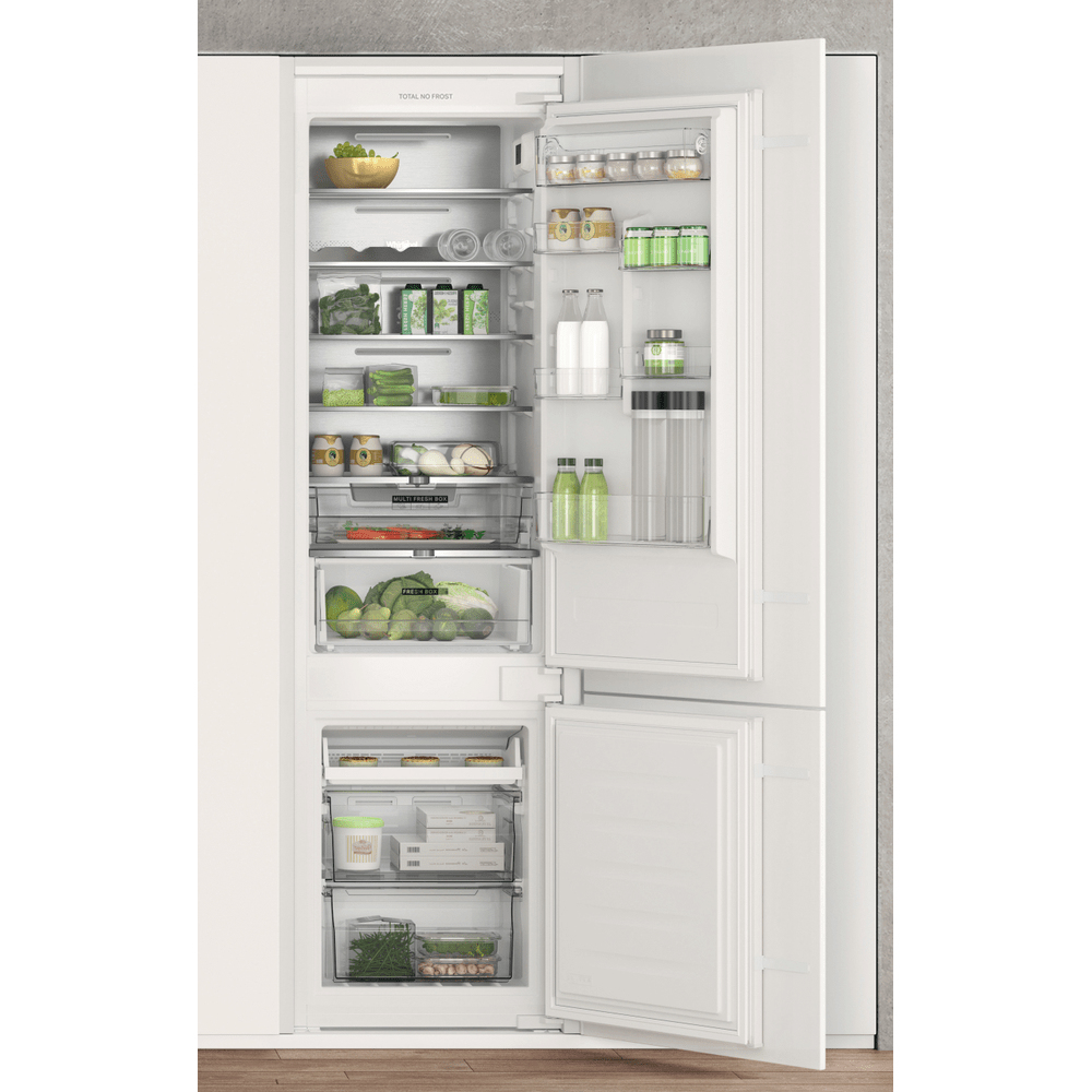 Caratteristiche di questo frigorifero combinato da incasso Whirlpool: colore bianco. Modello alto e capiente, adatto per le esigenze di tutta la famiglia. Ripiani in vetro, robusti ed eleganti al tempo stesso. Flusso d’aria regolare e uniforme all’interno dell’elettrodomestico, per una ventilazione potenziata. Sensori 6° SENSO che abbassano automaticamente la temperatura all’interno dell’elettrodomestico quando vengono introdotti nuovi alimenti, riducendo così il consumo di energia elettrica.