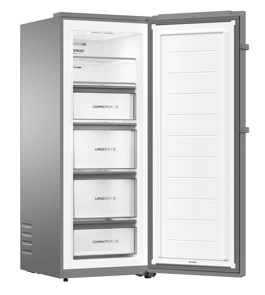 Haier H4F226SEH1. Capacità netta congelatore: 226 L, Classe climatica: SN, Capacità di congelamento: 14 kg/24h, Autonomia senza energia elettrica: 7 h, Emissione acustica: 37 dB, Punteggio: 4*, Sistema No-frost. Cerniera porta: Destra. Tipo di lampada: LED. Classe efficienza energetica: E, Consumo energetico annuo: 230 kWh. Colore del prodotto: Acciaio inox