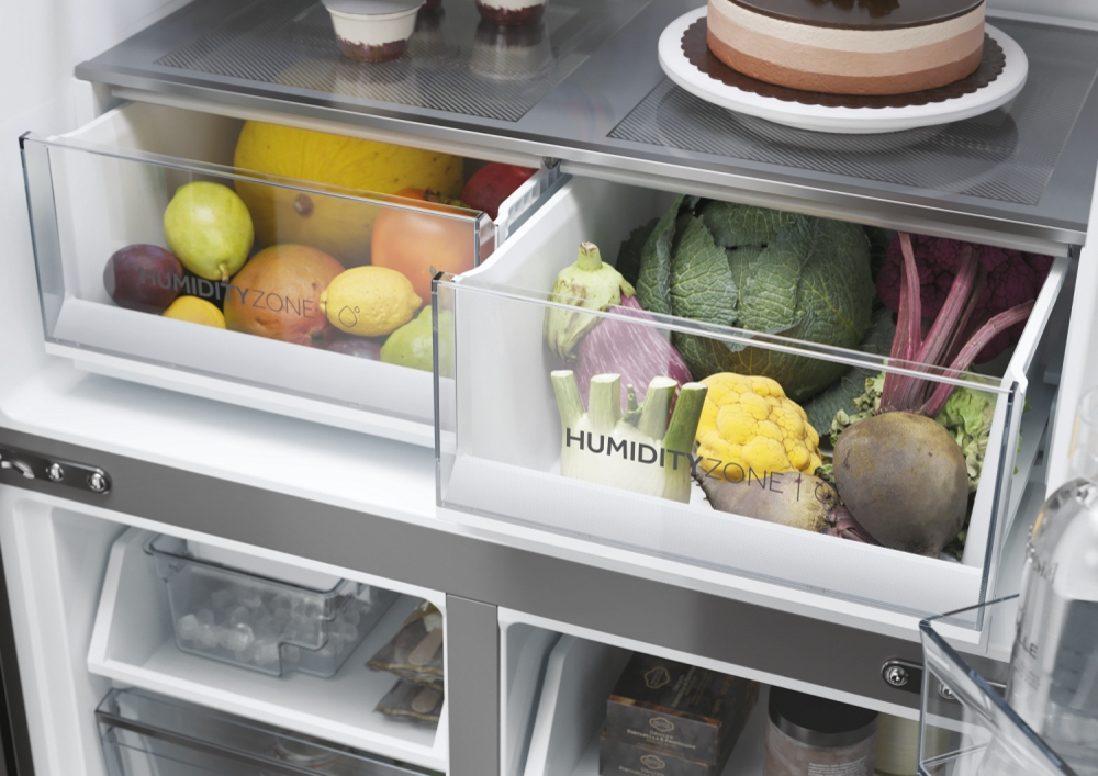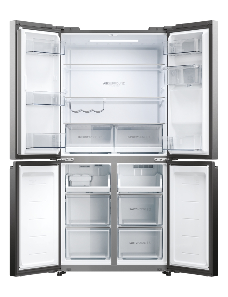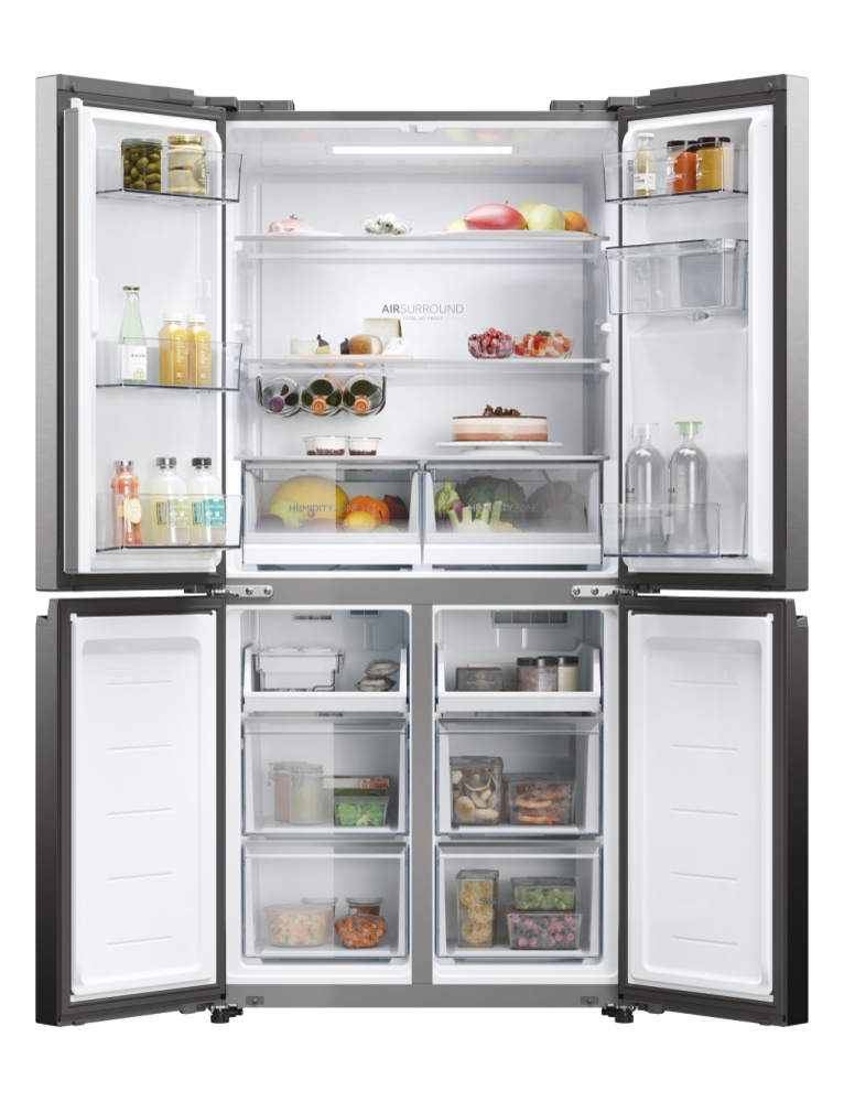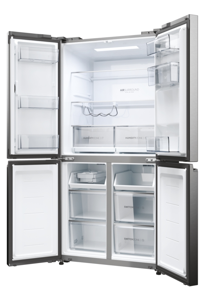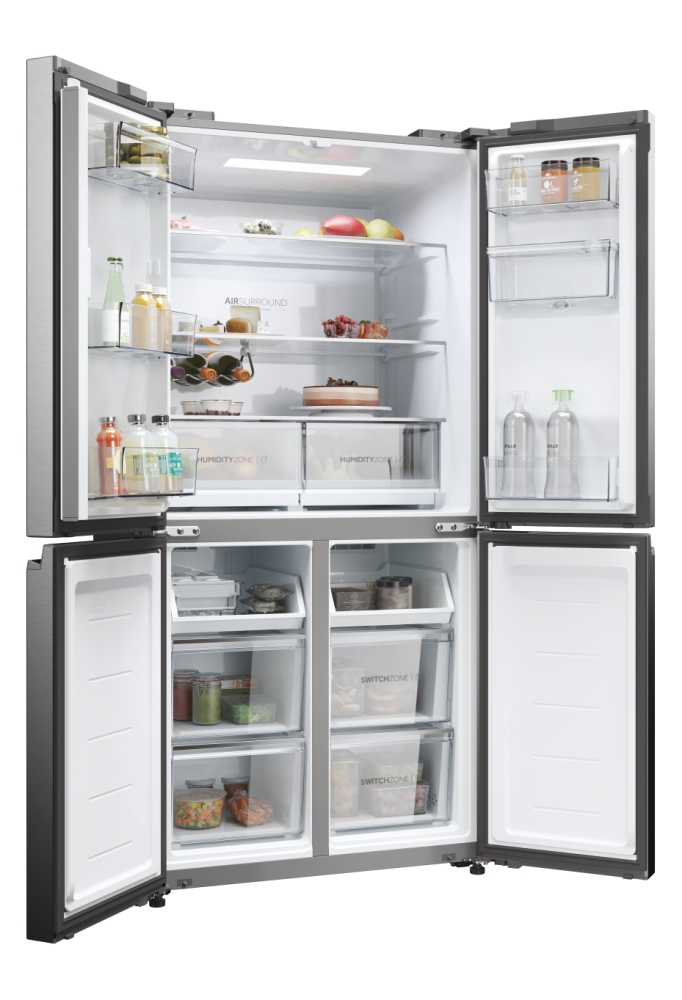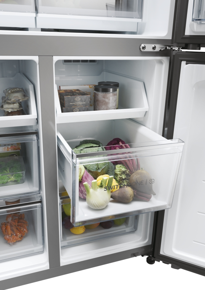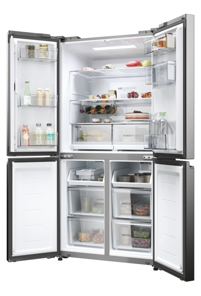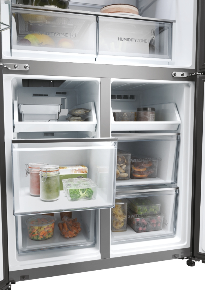 Con una larghezza di 83 cm, i frigoriferi della gamma Cube 83 a quattro porte presentano un elegante design moderno che valorizza ogni tipo di arredamento, mentre gli scomparti interni sono in grado di soddisfare qualsiasi esigenza di refrigerazione. Le porte verticali di frigo e freezer assicurano una migliore visibilità del contenuto. Questo significa che troverai prima ciò che cerchi, in questo modo si riducono sbalzi di temperatura e consumi energetici e la qualità degli alimenti si preserva più a lungo. I frigoriferi Cube 83 Serie 5 di Haier assicurano la conservazione perfetta degli alimenti grazie alle zone dedicate capaci di controllare temperatura e/o umidità, oltre alle altre soluzioni di refrigerazione.